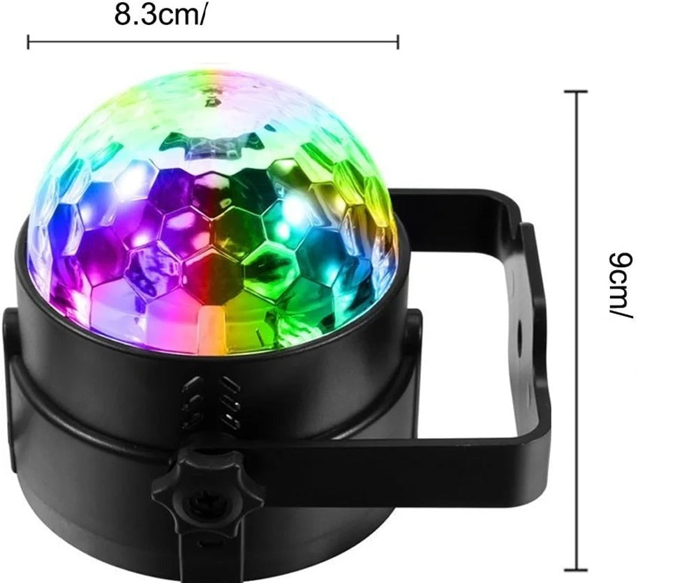 Multi função luzes de discoteca: 3 modos ativados por som + 7 modos de iluminação + flash + controle de velocidade de rotação + controle de velocidade flash.